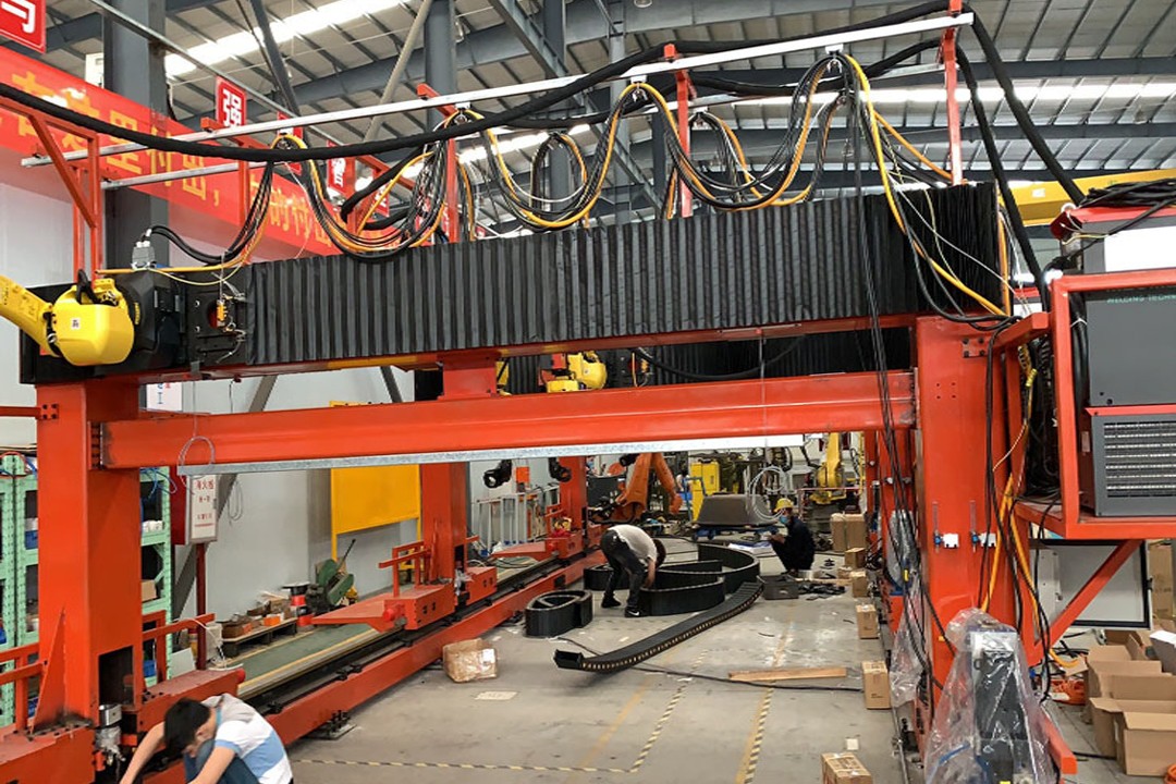 4.是使用ABB伺服馬達控制,通過精密減速機、重載滾輪導軌齒輪齒條進行傳動,重復精度高。